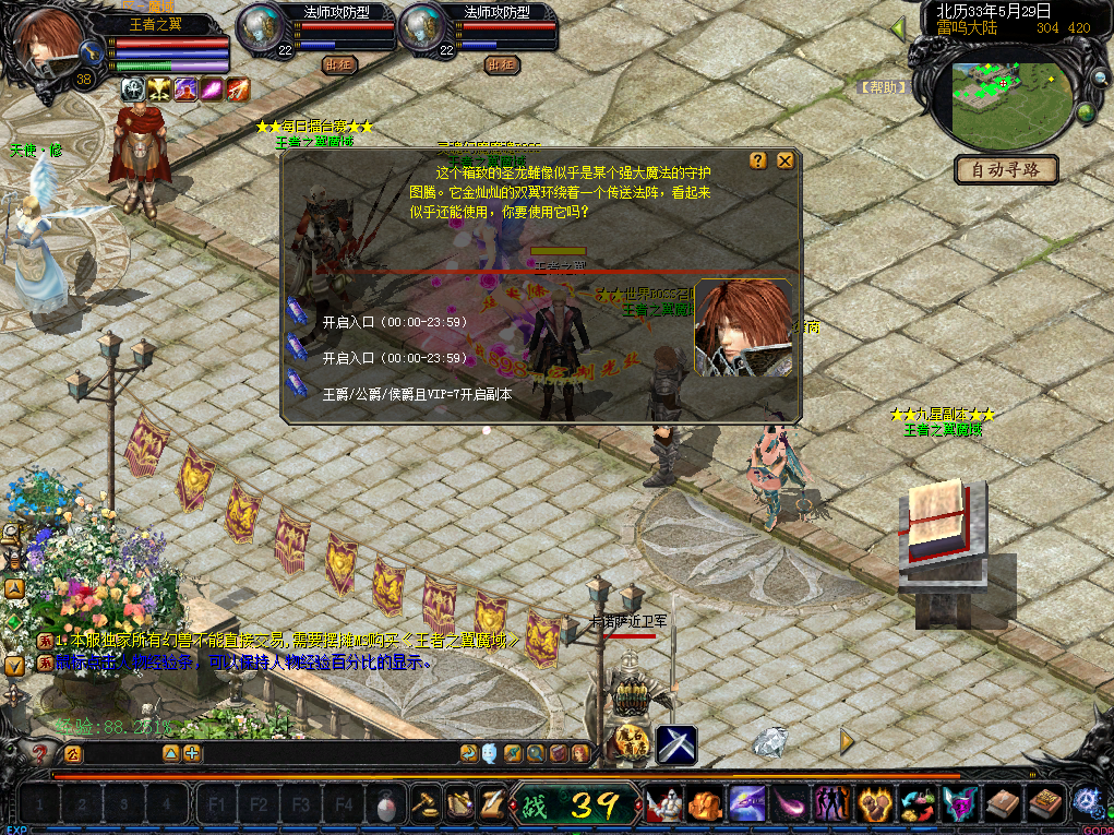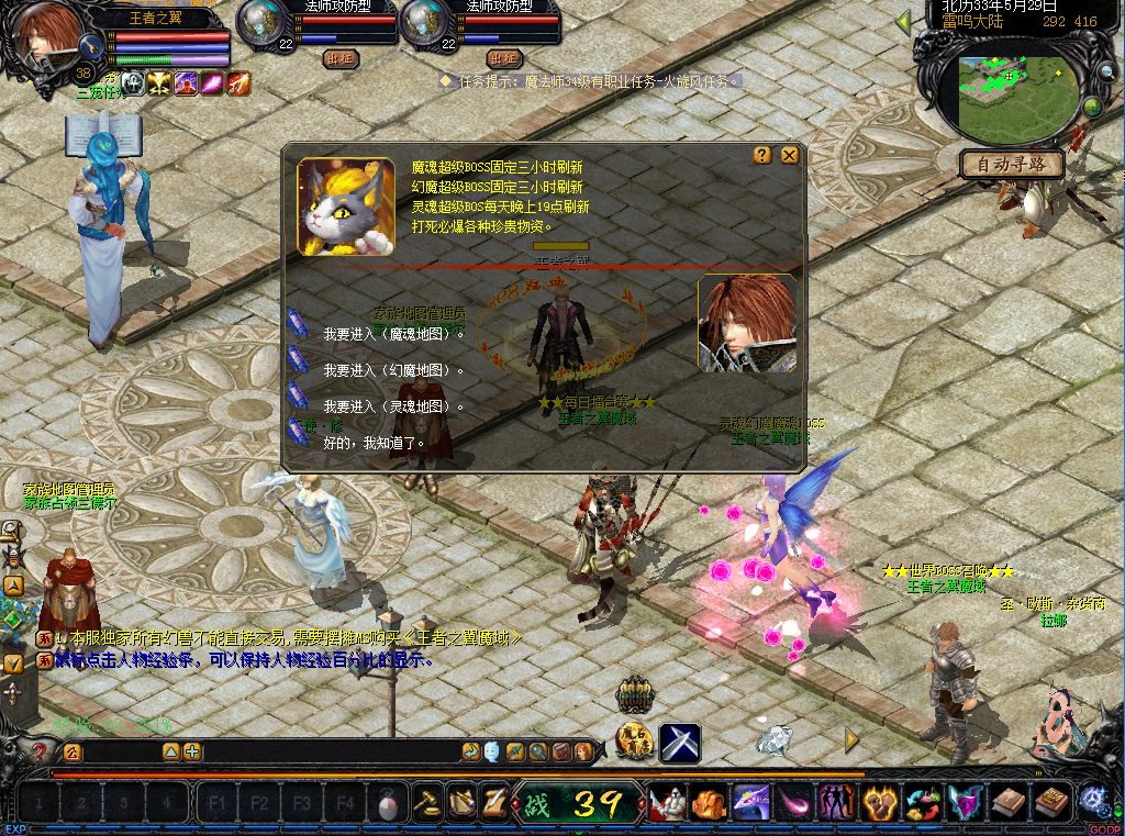 王者之翼,人物等级最高137级,升级经验同步官方,装备魔魂最高+12,副宠最高20星无任何变态设置!
