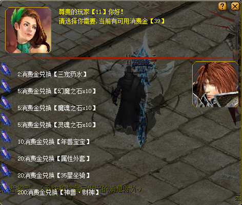 | 神豪套餐=300元 | 100000魔石, 极品+20 全属性+20装备一套,财神宝宝3只。 |